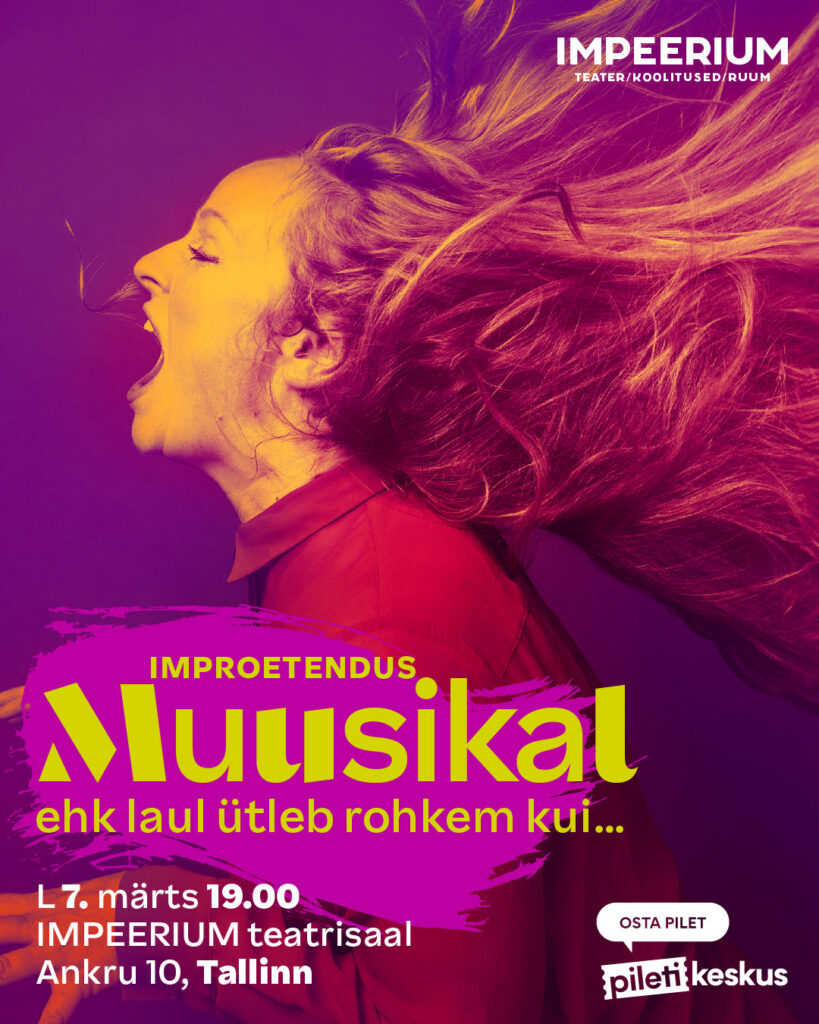07/03/2025 @ 19:00 – 21:00 – Ole valmis ainulaadseks teatriõhtuks, kus iga heli, samm ja sõna sünnivad otse Sinu silme all. Palavalt armastatud muusikali teatrivorm nüüd improkastmes! IMPEERIUMi “Muusikal” on kahevaatuseline etendus, mis põimib kokku laulu, tantsu ja sõnalise dialoogi – ja seda täiesti ilma ettevalmistatud stsenaariumita. See on muusikaline seiklus ilma piirideta. Lugu, kogu muusika ja ka valgusshow sünnib kohapeal. […]