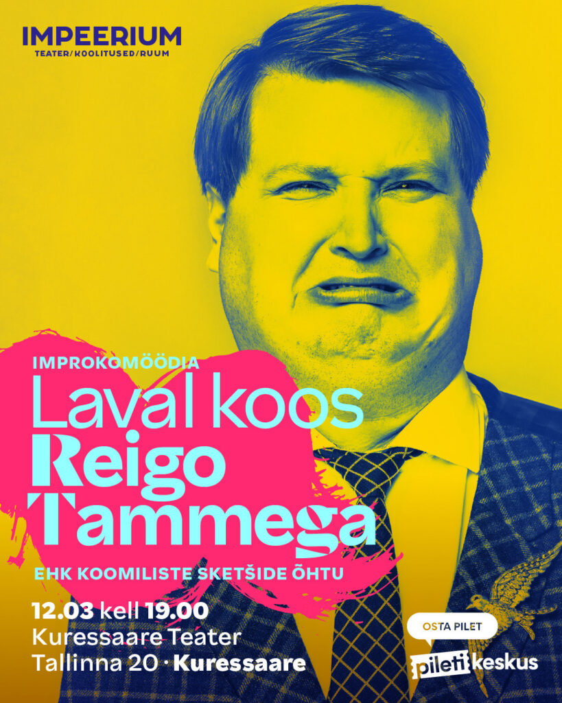 12/03/2025 @ 19:00 – 21:00 – Millal Sina viimati südamest naersid? Improteater IMPEERIUM mängib etendusi armastatud eesti näitlejatega. Seekord toome improlavale aasta meelelahutaja tiitliga pärjatud REIGO TAMME! Reigo Tamm on suurepärane tenor, ooperilaulja. Ta on õppinud nii lavakunstikoolis kui ka Muusika- ja Teatriakadeemias. Alles hiljaaegu nägime tema vingeid muundumisi saates “Su nägu kõlab tuttavalt”. Nüüd avastame teda tuttavaks saamas improteatriga ja […]
