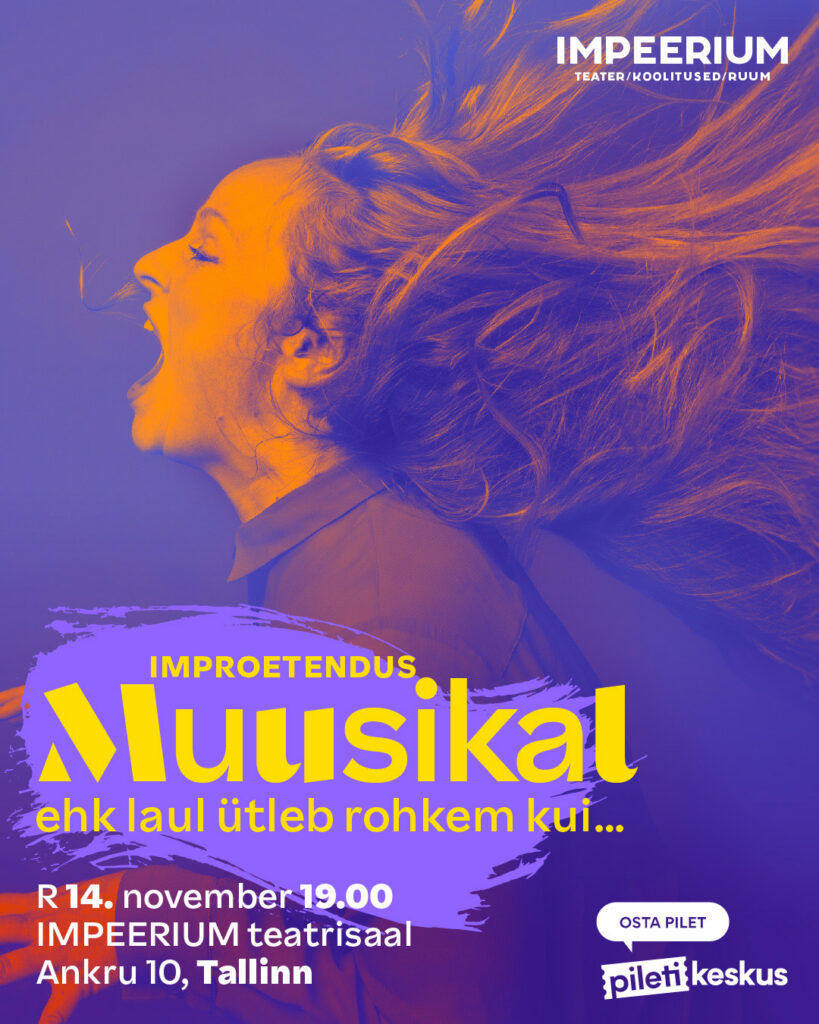 14/11/2025 @ 19:00 – 21:00 – Ole valmis ainulaadseks teatriõhtuks, kus iga heli, samm ja sõna sünnivad otse Sinu silme all. Palavalt armastatud muusikali teatrivorm nüüd improkastmes! IMPEERIUMi “Muusikal” on kahevaatuseline etendus, mis põimib kokku laulu, tantsu ja sõnalise dialoogi – ja seda täiesti ilma ettevalmistatud stsenaariumita. See on muusikaline seiklus ilma piirideta. Lugu, kogu muusika ja ka valgusshow sünnib kohapeal. […]