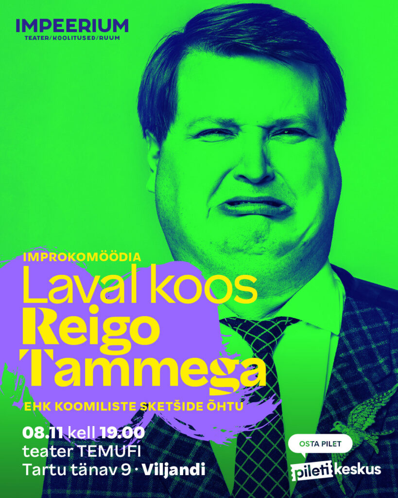 08/11/2025 @ 19:00 – 21:00 – Millal Sina viimati südamest naersid? Improteater IMPEERIUM mängib etendusi armastatud eesti näitlejatega. Seekord toome improlavale aasta meelelahutaja REIGO TAMME! Reigo Tamm on suurepärane tenor, ooperilaulja Rahvusooper Estonias. Ta on õppinud nii lavakunstikoolis kui ka Muusika- ja Teatriakadeemias. Alles hiljaaegu nägime tema vingeid muundumisi saates “Su nägu kõlab tuttavalt”. Nüüd avastame teda tuttavaks saamas improteatriga ja […]