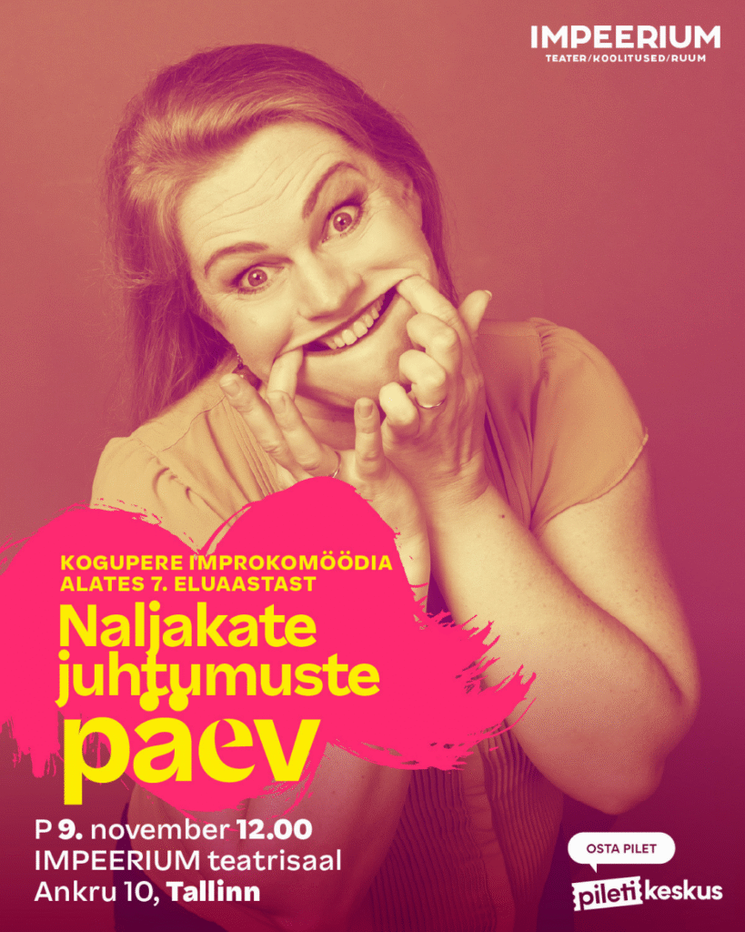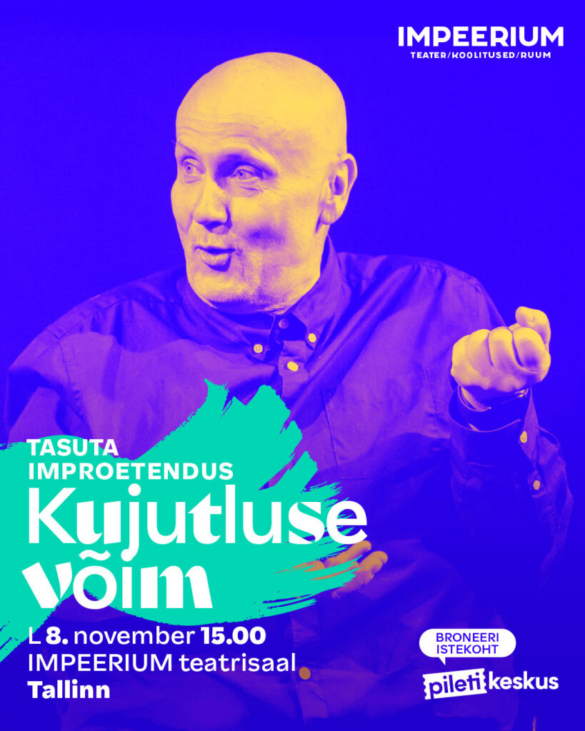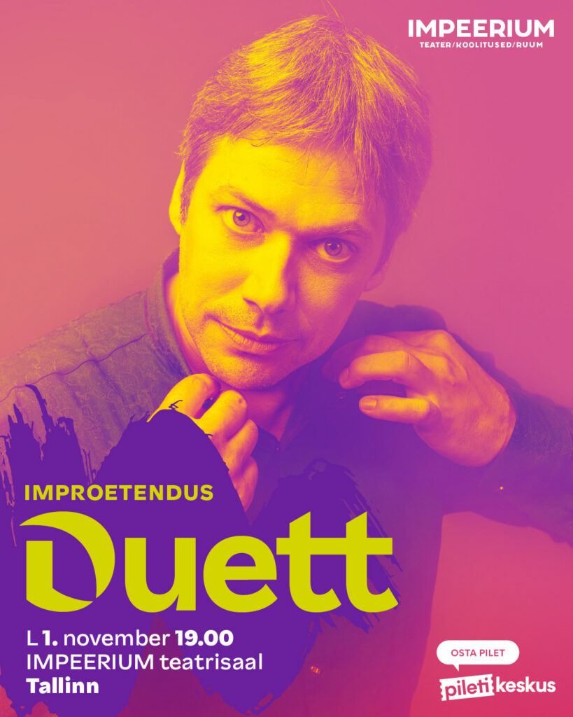 07/11/2025 @ 19:00 – 21:00 – Ole valmis ainulaadseks teatriõhtuks, kus iga heli, samm ja sõna sünnivad otse Sinu silme all. Palavalt armastatud muusikali teatrivorm nüüd improkastmes! IMPEERIUMi “Muusikal” on kahevaatuseline etendus, mis põimib kokku laulu, tantsu ja sõnalise dialoogi – ja seda täiesti ilma ettevalmistatud stsenaariumita. See on muusikaline seiklus ilma piirideta. Lugu, kogu muusika ja ka valgusshow sünnib kohapeal. […]